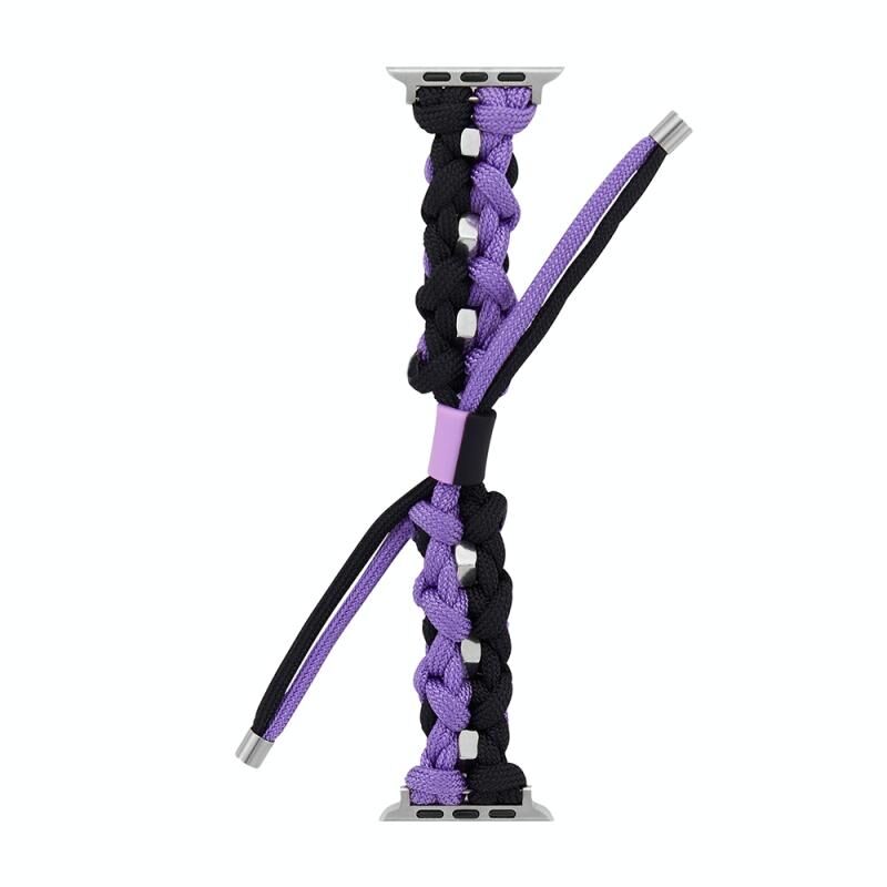 For Apple Watch Series 6 44mm Screw Nut Dual-Color Braided Paracord Watch Band(Black Purple)