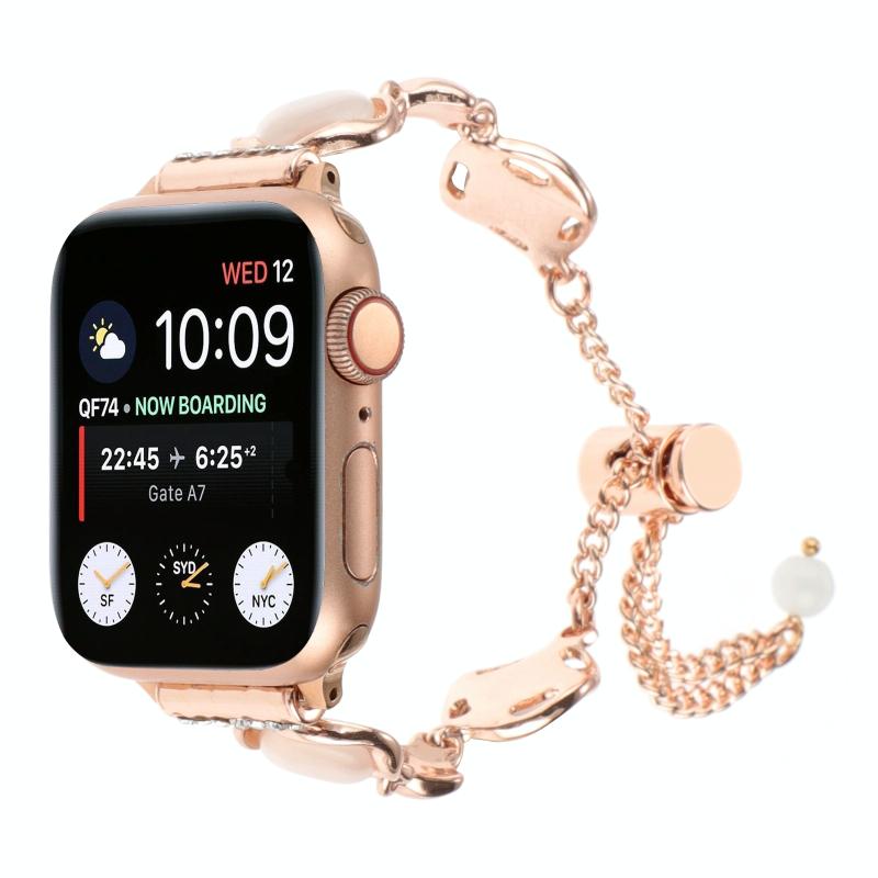 Για Apple Watch Series 6 44mm Κέλυφος Μεταλλική Αλυσίδα Βραχιόλι Ρολογιού (Ροζ χρυσός)