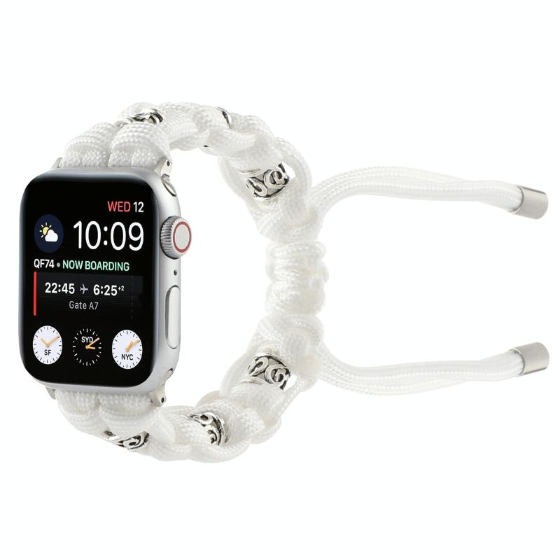 Για Apple Watch Series 6 44mm Λουρί Σιλκένιες Ασημένιες Χάντρες Πλεχτό (Μαύρο)