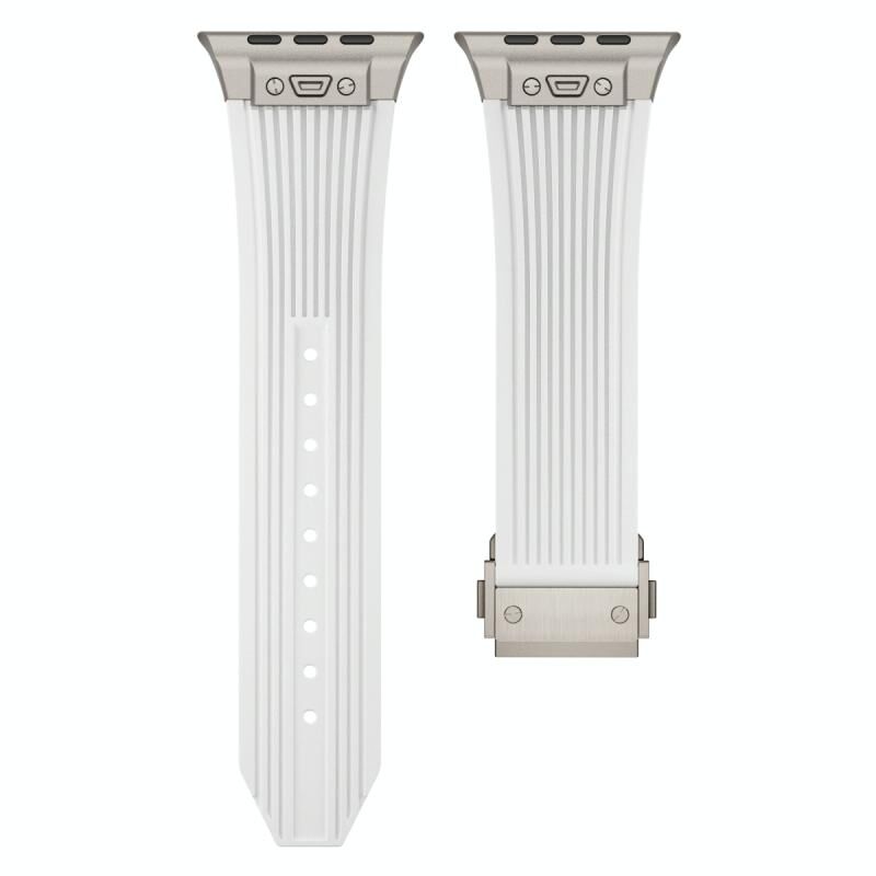 Για Apple Watch Series 6 44mm Κάθετη Υφή Τιτανίου Αγκράφα Ελαστικός Ιμάντας Σιλικόνης (Λευκό)