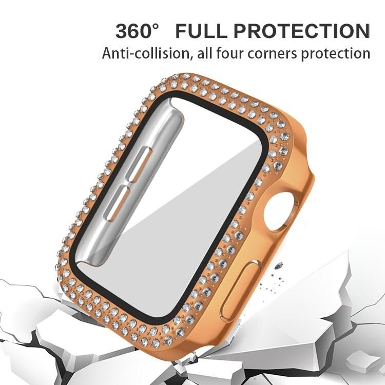Θήκη ρολογιού PC με διαμάντια διπλής σειράς και μεμβράνη για Apple Watch Series 6 / 5 / 4 / SE 44mm (Χρυσό ροζ)