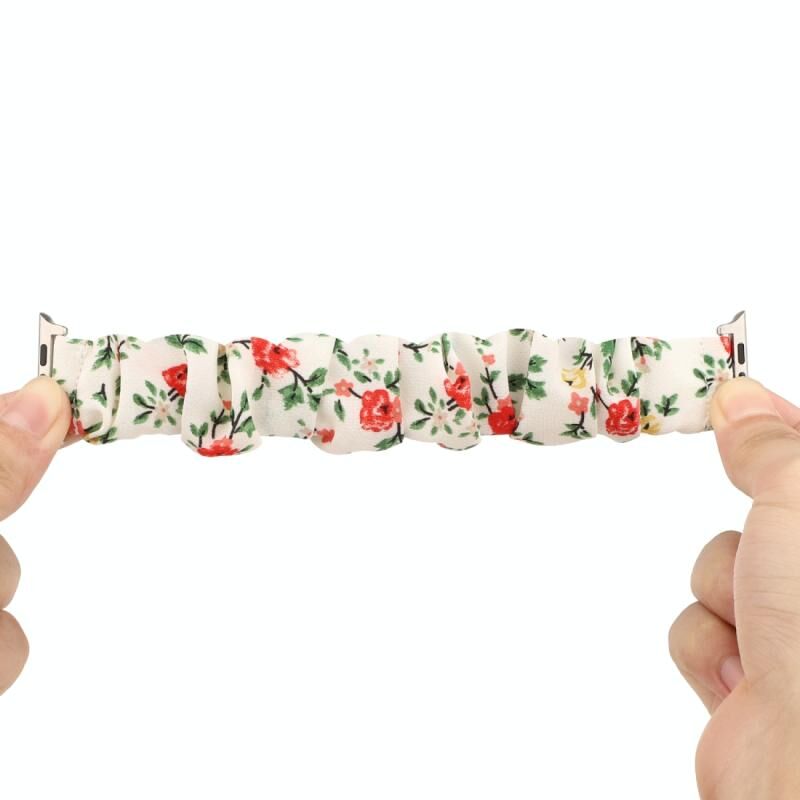 Για Apple Watch Series 7 41mm / 6 & SE & 5 & 4 40mm / 3 & 2 & 1 38mm Λουρί ρολογιού από ύφασμα + Δακτύλιος μαλλιών από ανοξείδωτο ατσάλι (Κόκκινο λουλουδάτο)