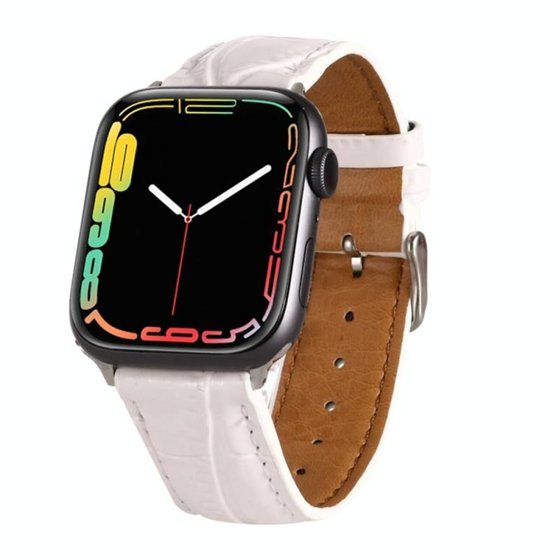 Για Apple Watch Series 7 41mm / 6 & SE & 5 & 4 40mm / 3 & 2 & 1 38mm Δερμάτινο Λουρί Χεριού με Υφή Κροκόδειλου (Λευκό)