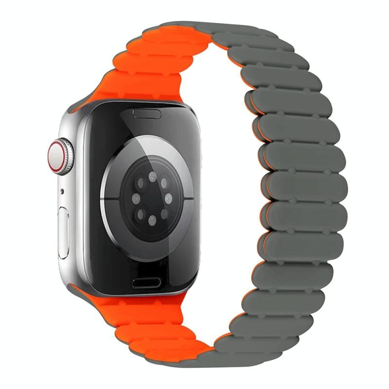 Για Apple Watch Series 7 41mm Λουρί Σιλικόνης με Μαγνητικό Κούμπωμα από Μπαμπού (Γκρι Πορτοκαλί)