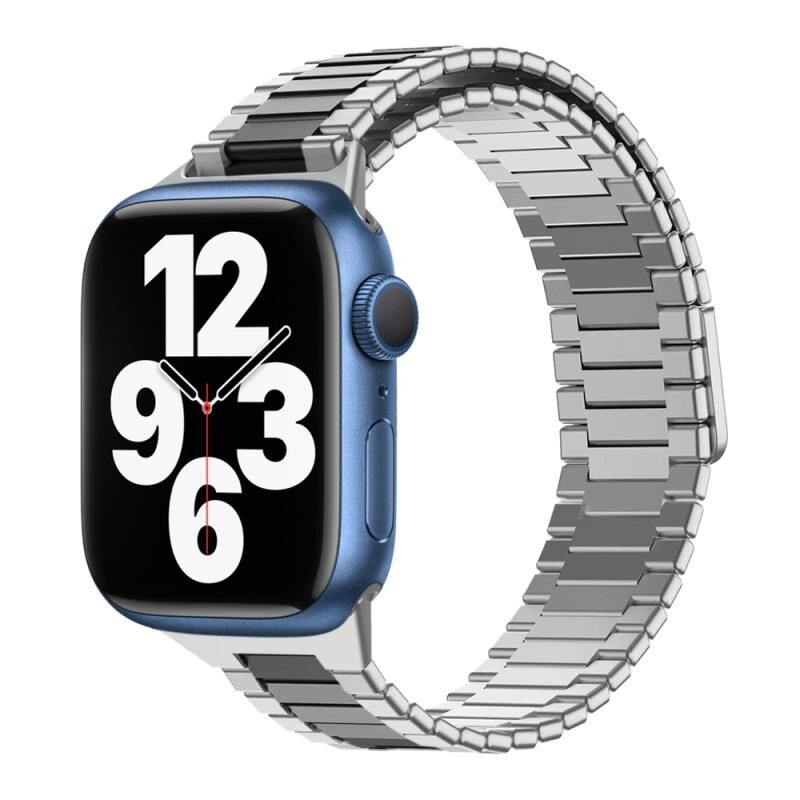 Για Apple Watch Series 7 41mm Μπαμπού Μαγνητικό Ανοξείδωτο Μεταλλικό Λουράκι Ρολογιού (Ασημί Μαύρο)