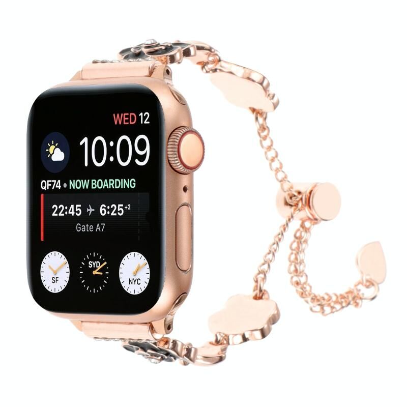 Για Apple Watch Series 7 41mm Μεταλλικό Μπρασελέ Λουλουδιού Καμέλια (Μαύρο Ροζ Χρυσό)