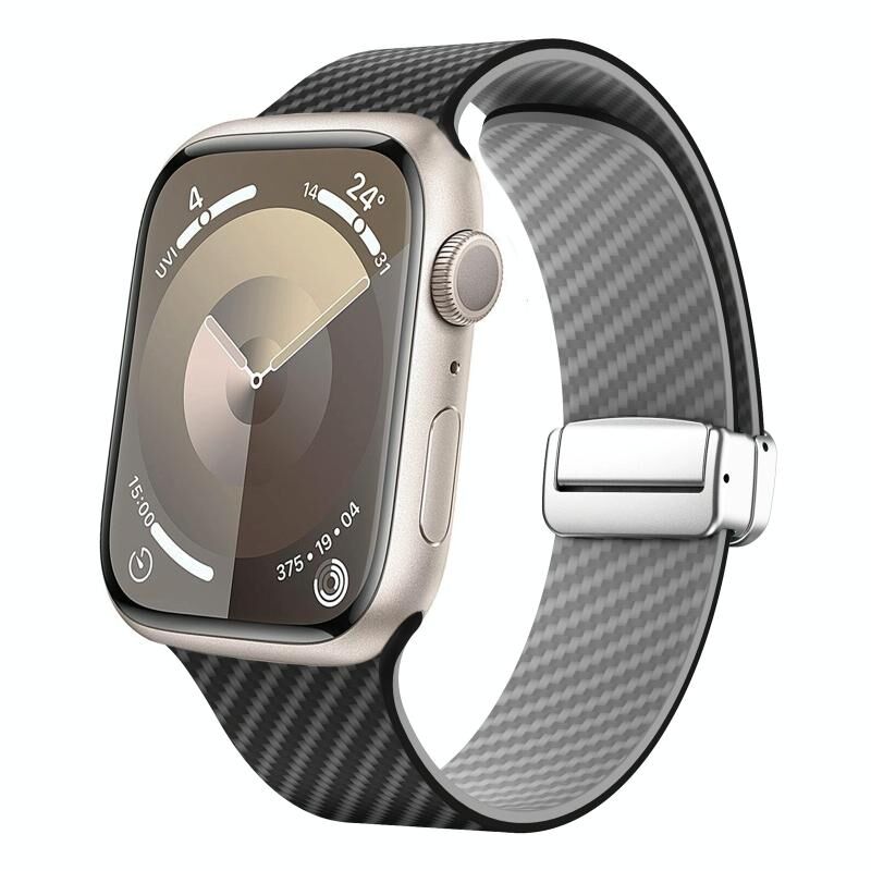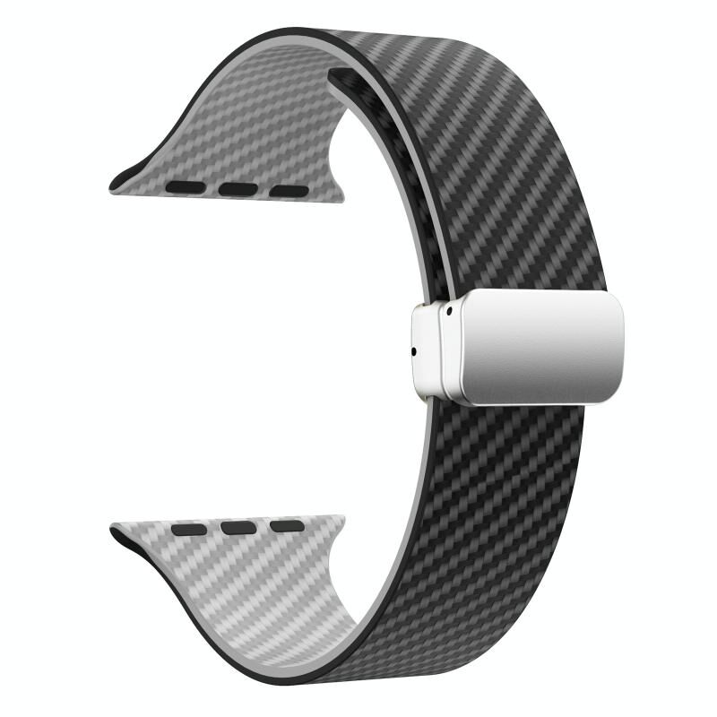 Για Apple Watch Series 7 41mm Λουρί ρολογιού από ανθρακονήματα με μαγνητική αγκράφα ασημί (Μαύρο Γκρι)