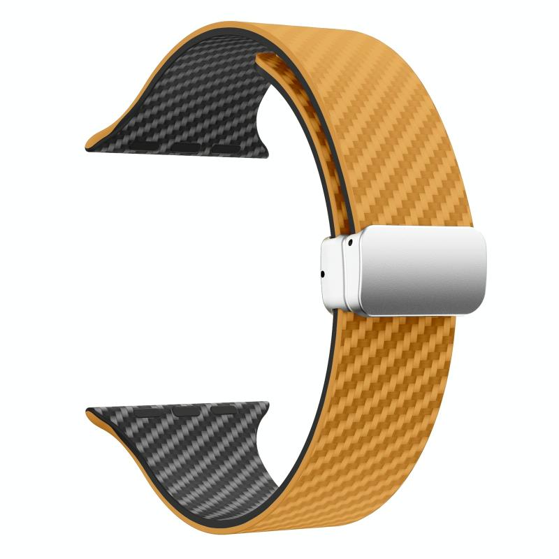 For Apple Watch Series 7 41mm Carbon Fiber Magnetic Silver Buckle Watch Band(Light Brown Black)