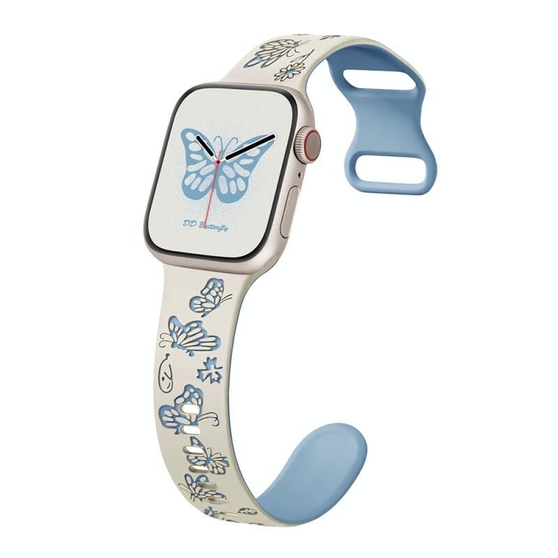 Για Apple Watch Series 7 41mm Έγχρωμο Μοτίβο Πεταλούδας Λουράκι Σιλικόνης για Ρολόι με Αγκράφα σε Σχήμα 8 (Λευκό Μαύρο)