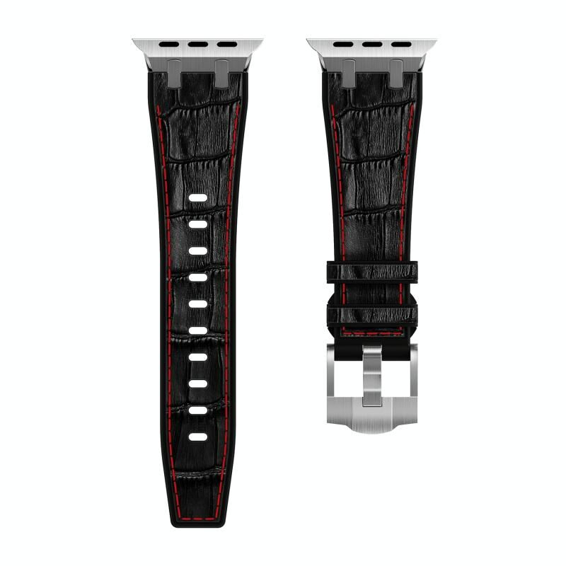 Για Apple Watch Series 7 41mm Λουρί Σιλικόνης Υγρού με Υφή Κροκόδειλου (Μαύρο Λευκό Μαύρο)