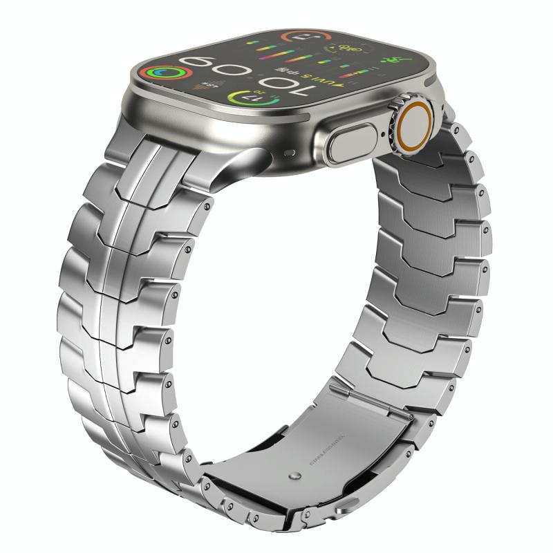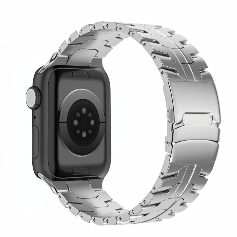 Για Apple Watch Series 7 41mm Λουρί Ρολογιού Ατσάλι Τιτανίου με Αγκράφα Διπλής Κλειδαριάς (Ασημί)