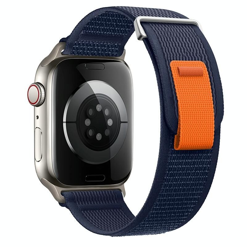 Για Apple Watch Series 7 41mm Διπλό Λουρί από Νάιλον (Σκούρο μπλε)
