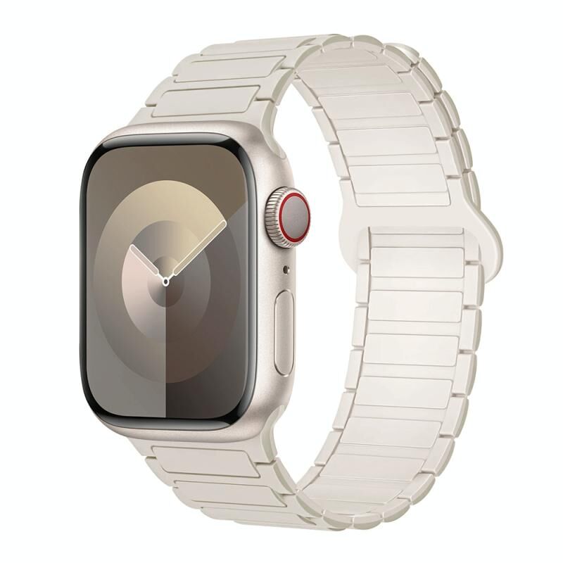 Για Apple Watch Series 7 41mm Μαγνητικό Λουράκι Σιλικόνης σε Σχήμα "I" (Λευκό Αστρόφωτο)