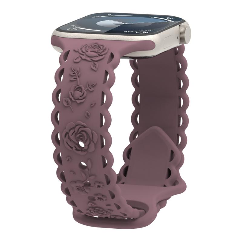 Για Apple Watch Series 7 41mm Δαντέλα 3D Ροζ Χαραγμένο Λουράκι Σιλικόνης (Μαύρο)