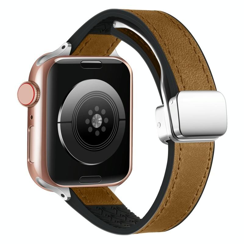 Για Apple Watch Series 7 41mm Μαγνητικό Δερμάτινο Λουράκι με Σιλικόνη (Κόκκινο Ρόδι)