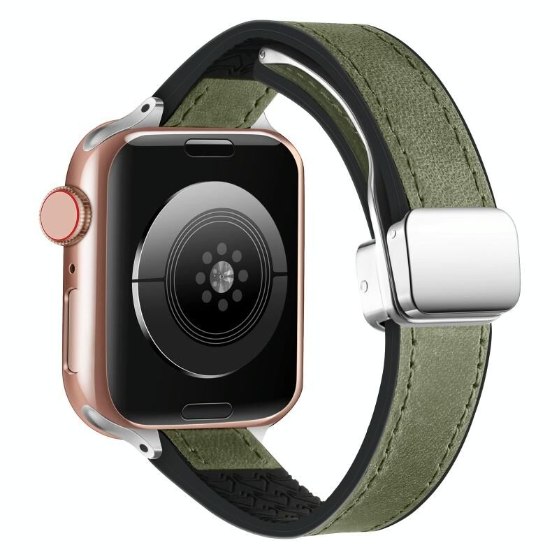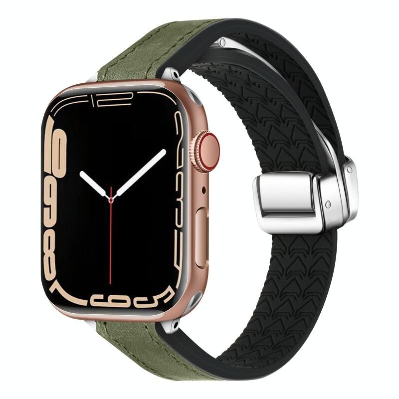 Για Apple Watch Series 7 41mm Μαγνητικό Δερμάτινο Λουράκι με Σιλικόνη (Κόκκινο Ρόδι)