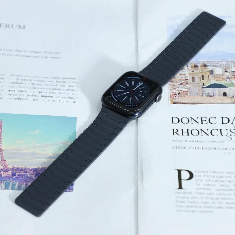 Για Apple Watch Series 7 41mm Μαγνητικό Λουράκι Σιλικόνης (Μεσάνυχτα)
