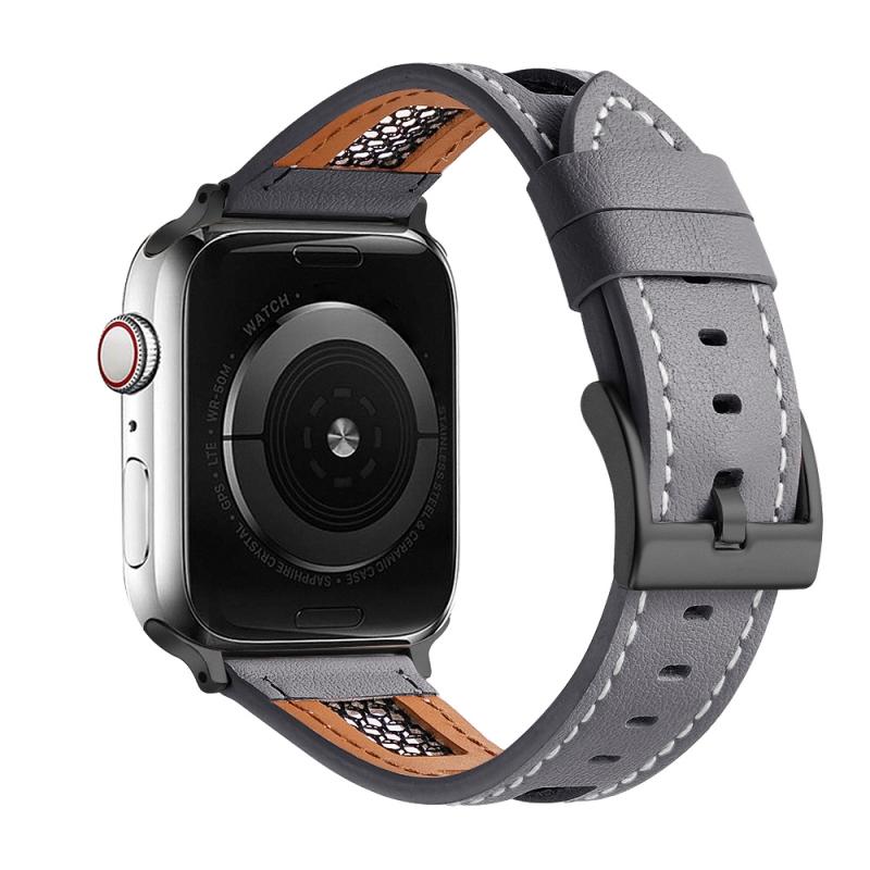Για Apple Watch Series 7 41mm Μπρασλέ Λουρί από γνήσιο δέρμα μοσχαριού πλέγματος (Γκρι)