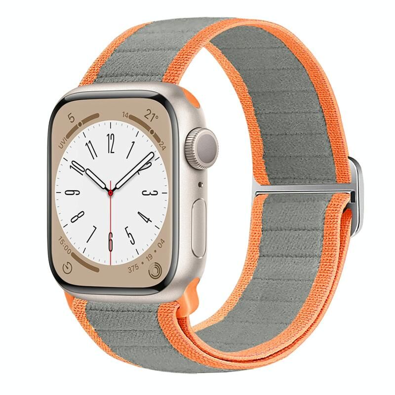 Για Apple Watch Series 7 41mm Λουρί ρολογιού από νάιλον με ελαστικό κούμπωμα (Γκρι Πορτοκαλί)