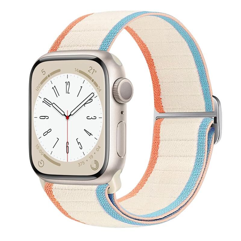 Για Apple Watch Series 7 41mm Λουρί ρολογιού από νάιλον με ελαστικό κούμπωμα (Γαλακτερό λευκό)