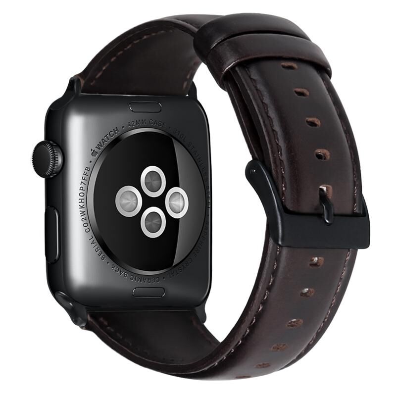 Για Apple Watch Series 7 41mm Λουρί Ρολογιού από Γνήσιο Δέρμα με Λάδι Κεριού (Σκούρο καφέ)