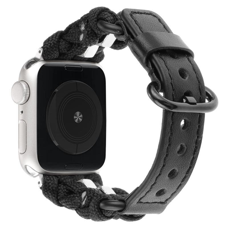 Για Apple Watch Series 7 41mm Λουρί Παρακορδίου με Γνήσιο Δέρμα (Μαύρο)
