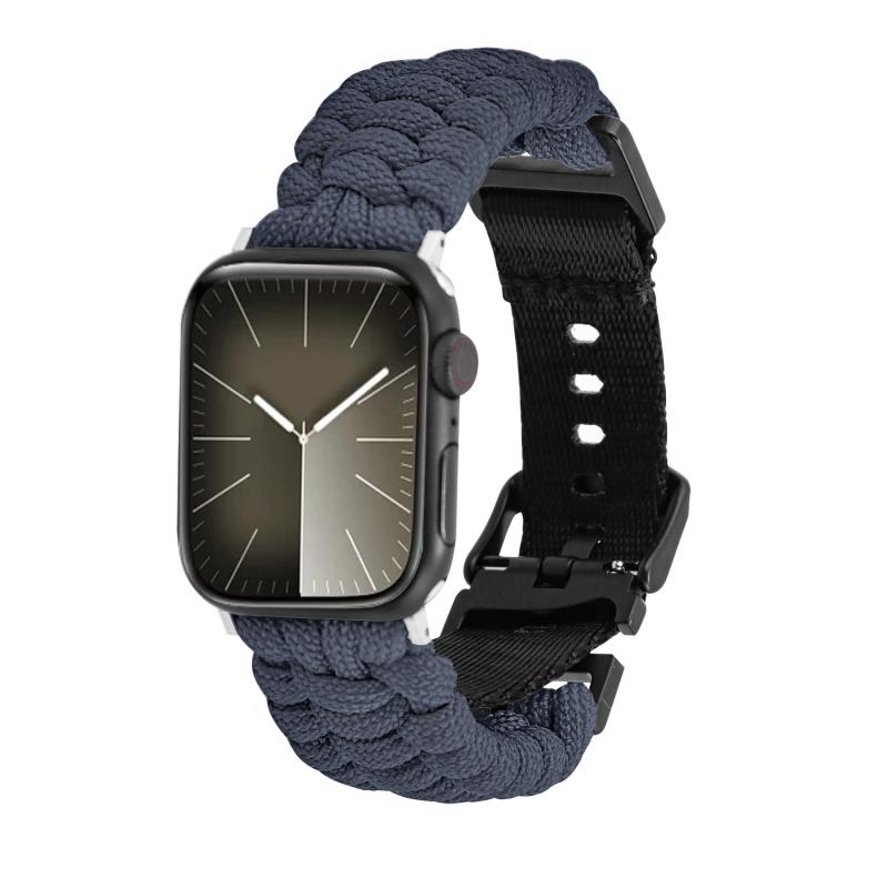 Για Apple Watch Series 7 41mm, Απλή πλεκτή λουρί καρπού από paracord με αγκράφα (Μαύρο)