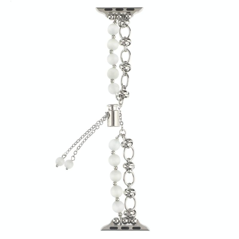 Για Apple Watch Series 7 41mm Μεταλλικό Μπρασελέ Λουρί με Αλυσίδα Μαργαριταριών (Λευκό Ασημί)