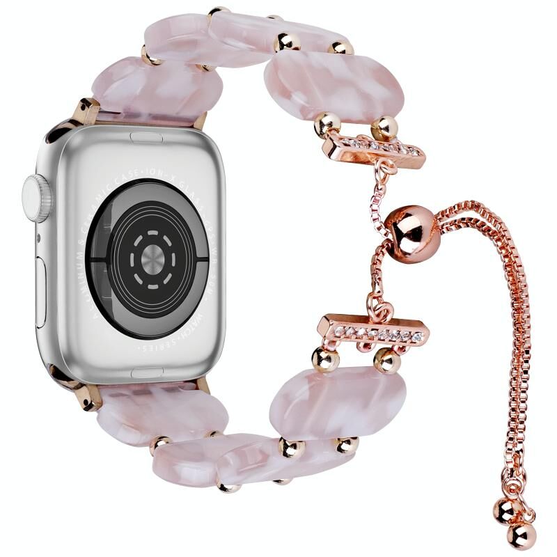 For Apple Watch Series 7 41mm Resin Retractable Chain Watch Band(Pink Flower)