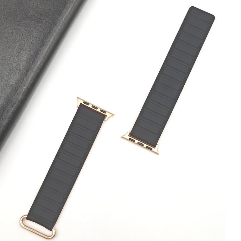 For Apple Watch Series 7 41mm Reverse Buckle Magnetic Silicone Watch Band(Rose Buckle Black Orange)
