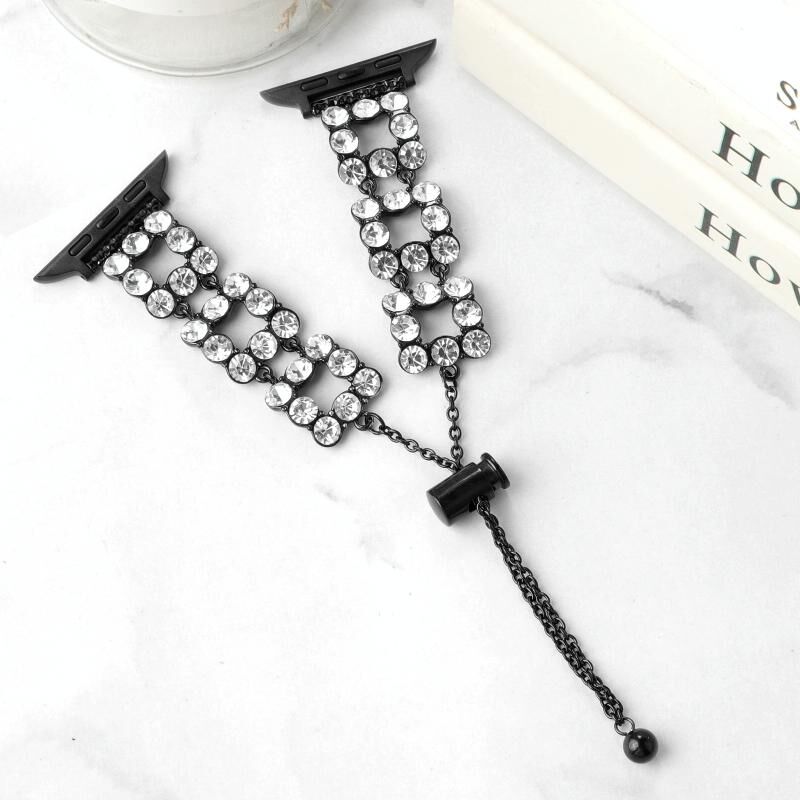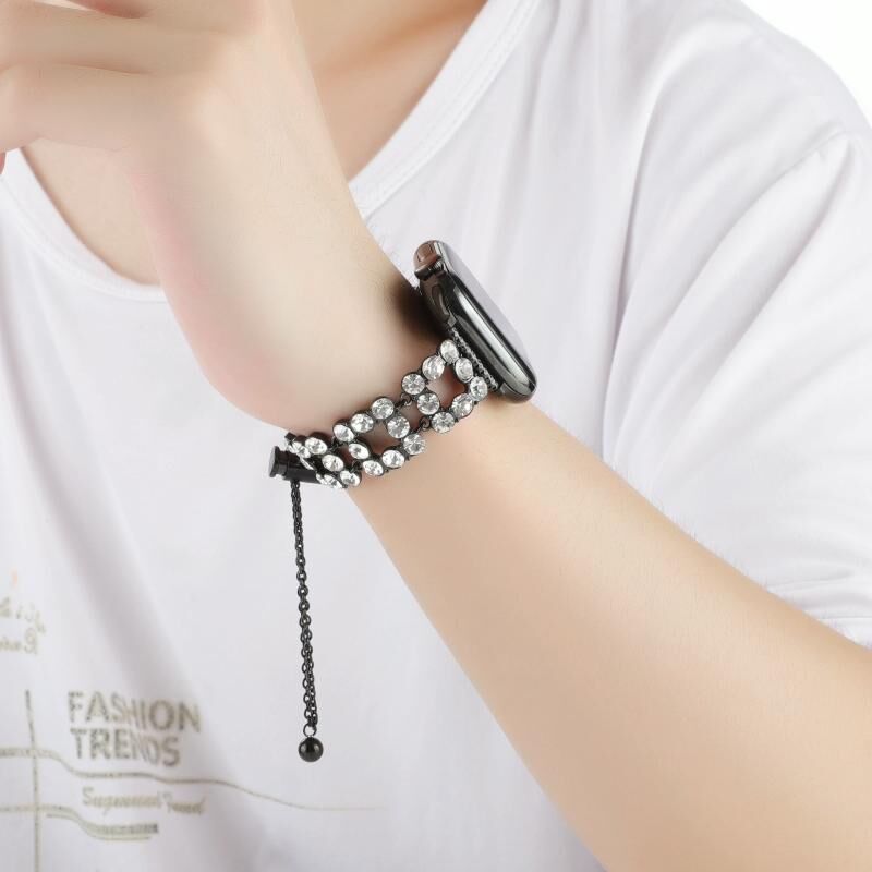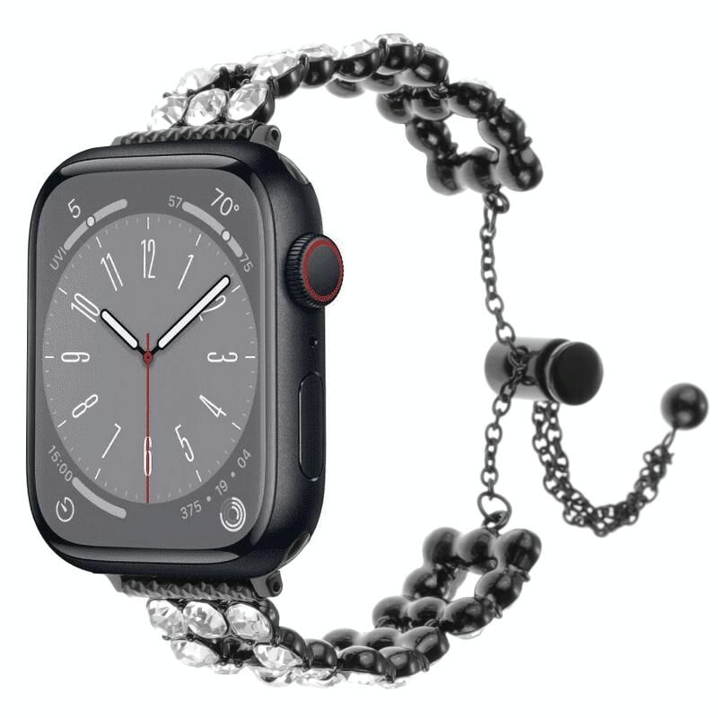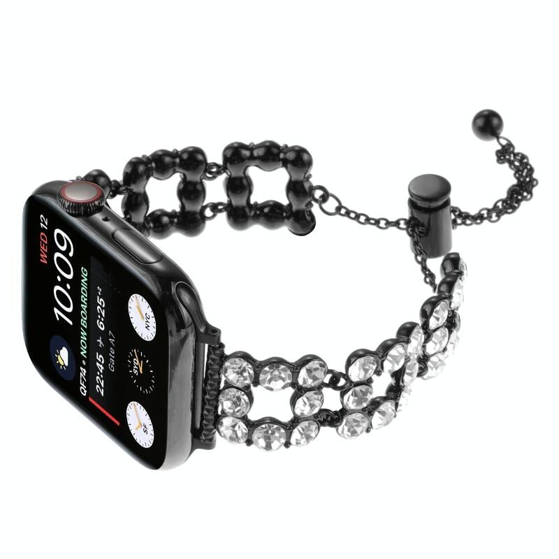 Για Apple Watch Series 7 41mm Βραχιόλι Μεταλλικό με Κρύσταλλα (Μαύρο)