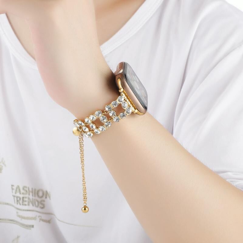 Για Apple Watch Series 7 41mm Βραχιόλι Μεταλλικό με Κρύσταλλα (Χρυσός)