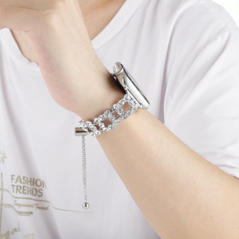 Για Apple Watch Series 7 41mm Βραχιόλι Μεταλλικό με Κρύσταλλα (Ασημί)
