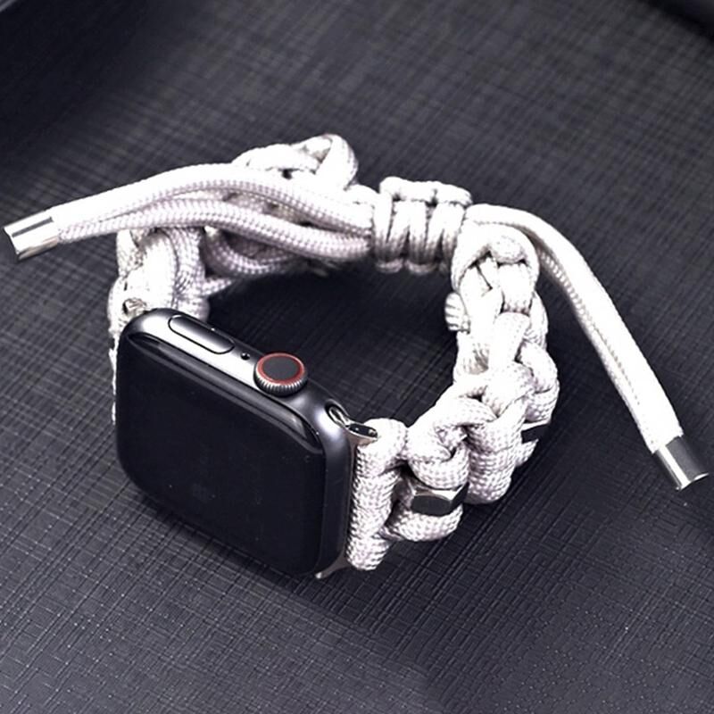 Για Apple Watch Series 7 41mm Βίδα Γκάιδα Πλεκτή Παρακορδική Λουράκι Ρολογιού (Λευκό)