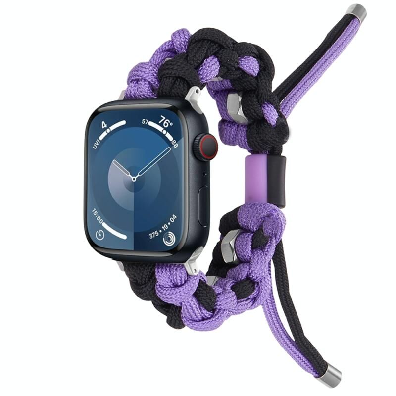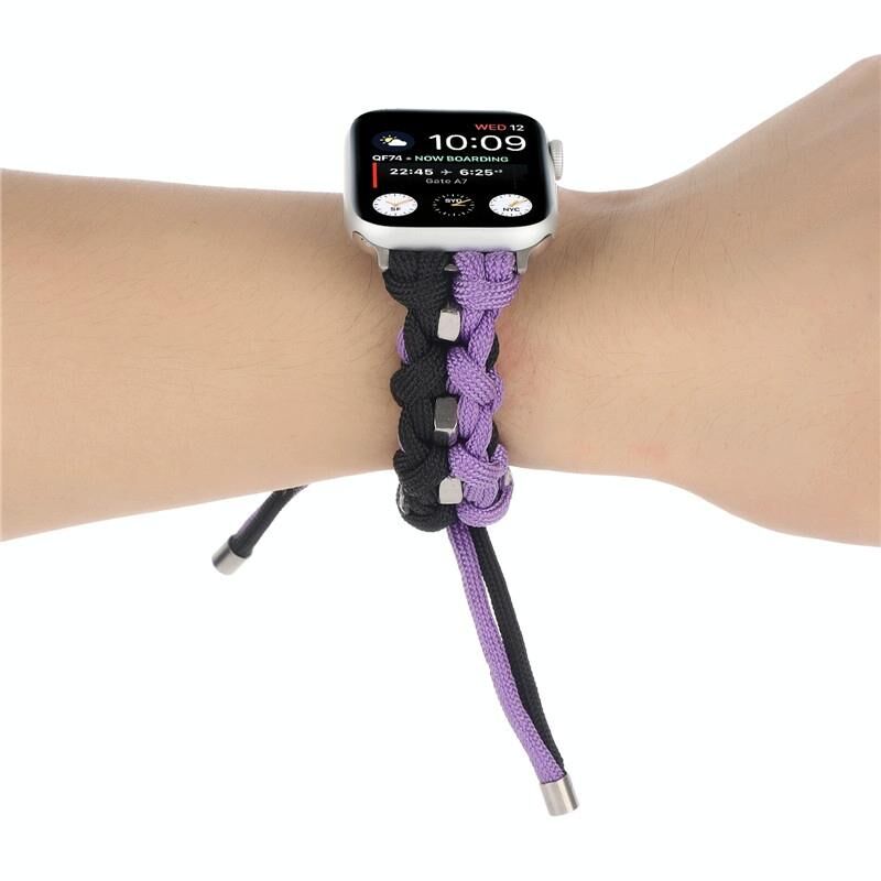 Για Apple Watch Series 7 41mm Βίδα Γκάι Dual-Color Πλεκτή Παρακορδική Ιμάντα Ρολογιού (Μαύρο Μωβ)