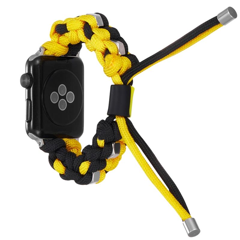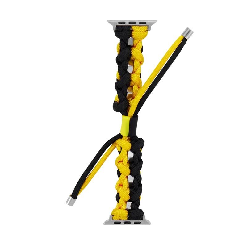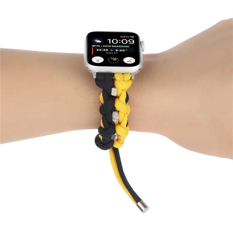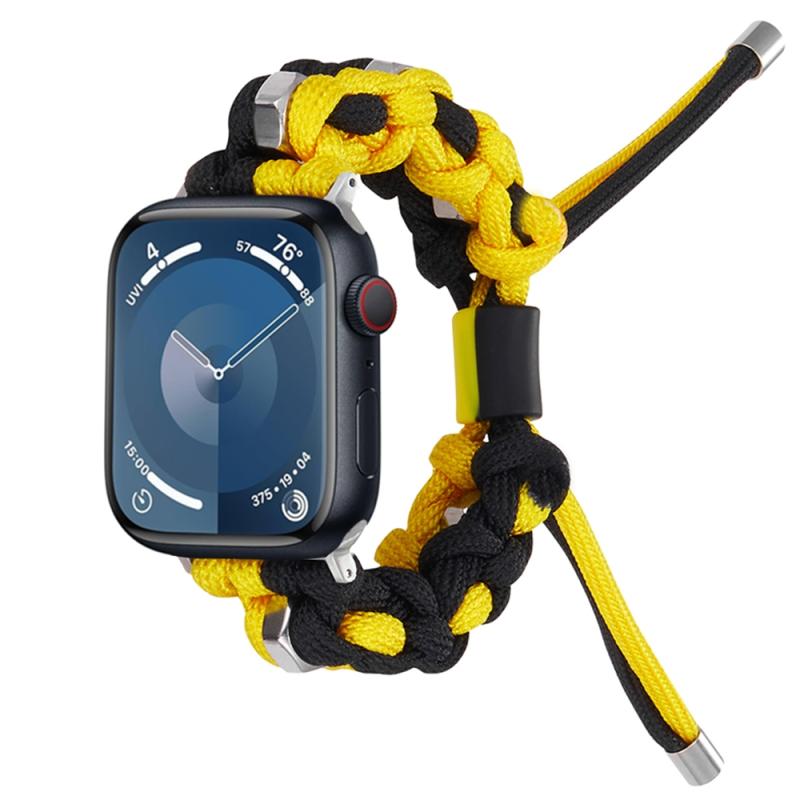 For Apple Watch Series 7 41mm Screw Nut Dual-Color Braided Paracord Watch Band(Black Yellow)