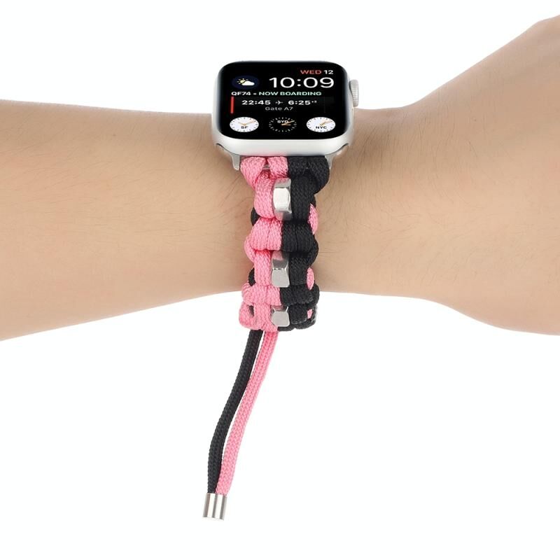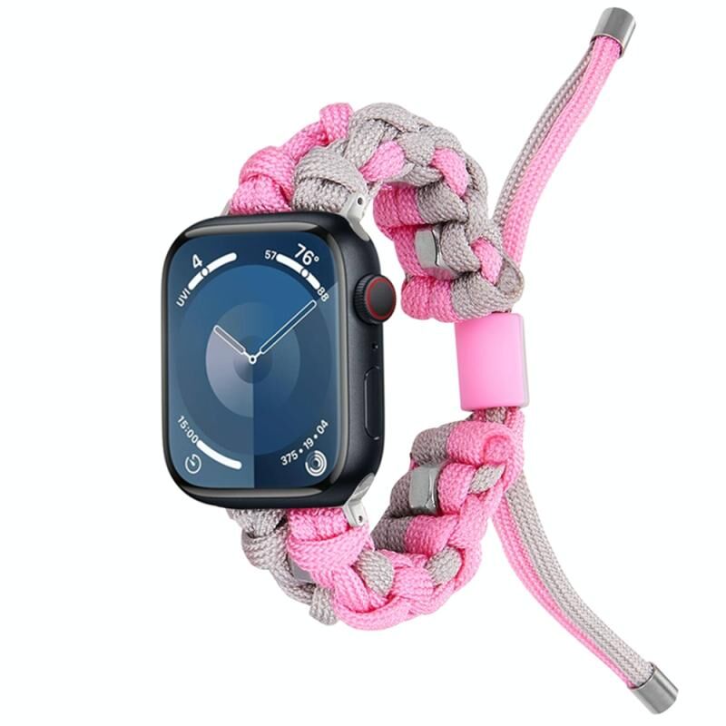 Για Apple Watch Series 7 41mm Βίδα Γκάι Dual-Color Πλεκτή Παρακορδική Ιμάντα Ρολογιού (Ασημί Ροζ)