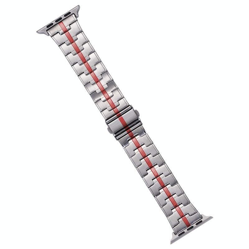 Για Apple Watch Series 7 41mm Ατσάλινο Μπρατσάκι (Ασημί Κόκκινο)