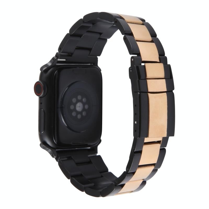 Για Apple Watch Series 7 41mm Τρισύνδεσμο Ατσάλινο Μπρασελέ (Μαύρο Ροζ Χρυσό)