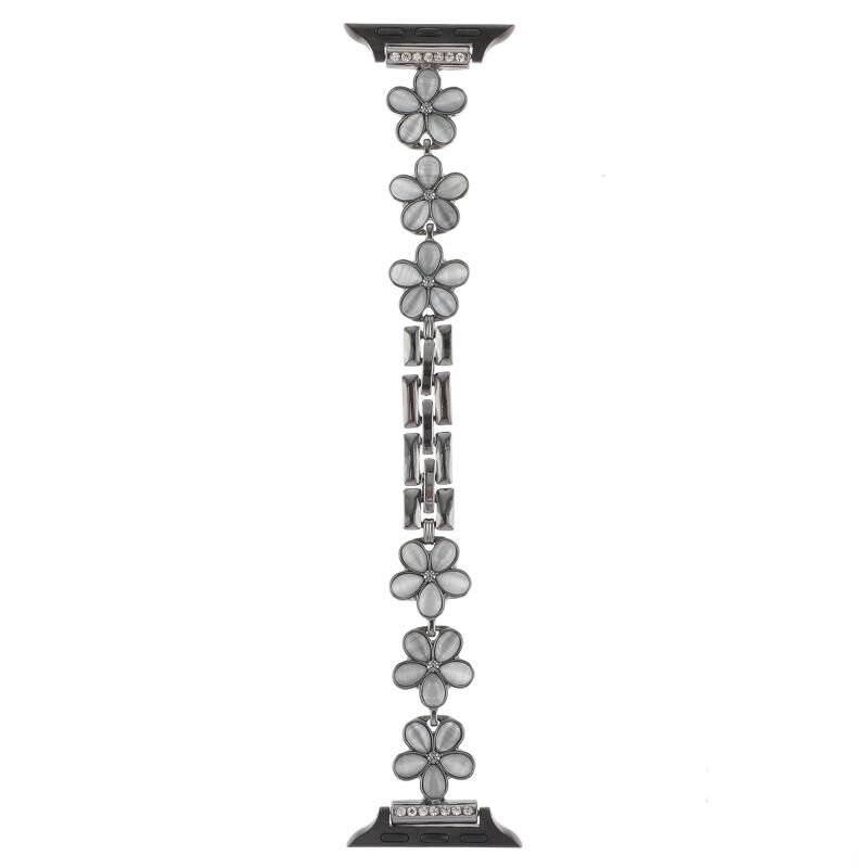 Για Apple Watch Series 7 45mm Λουρί ρολογιού με αλυσίδα από κράμα ψευδαργύρου με 5 πέταλα λουλουδιού (Μαύρο)