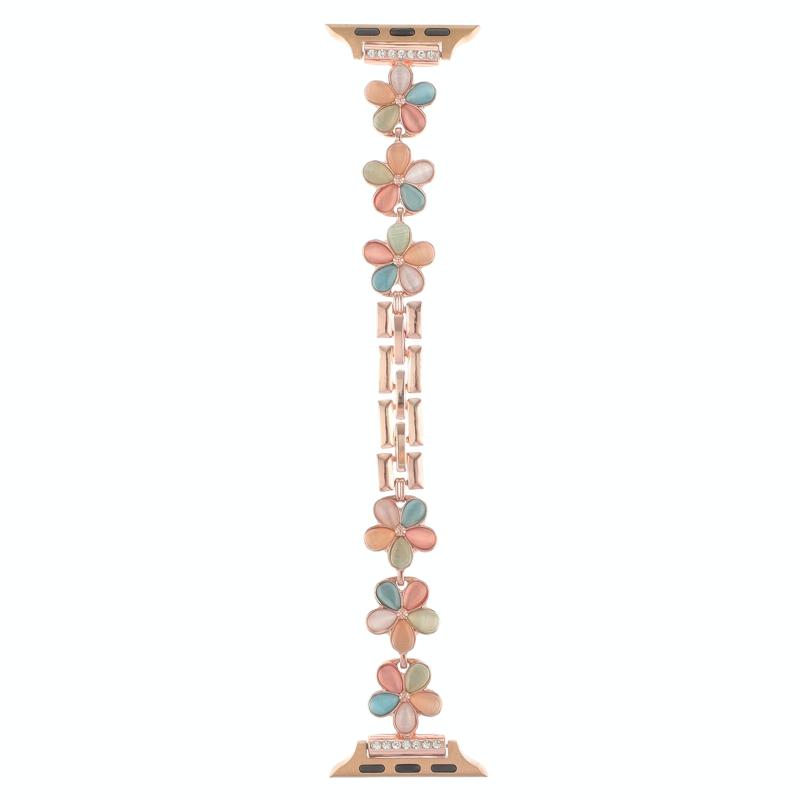 Για Apple Watch Series 7 45mm Λουρί ρολογιού με αλυσίδα από κράμα ψευδαργύρου με 5 πέταλα λουλουδιού (Μαύρο)