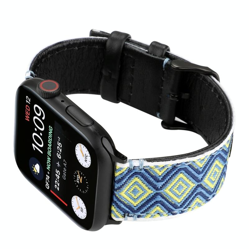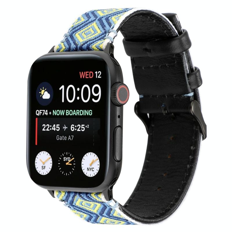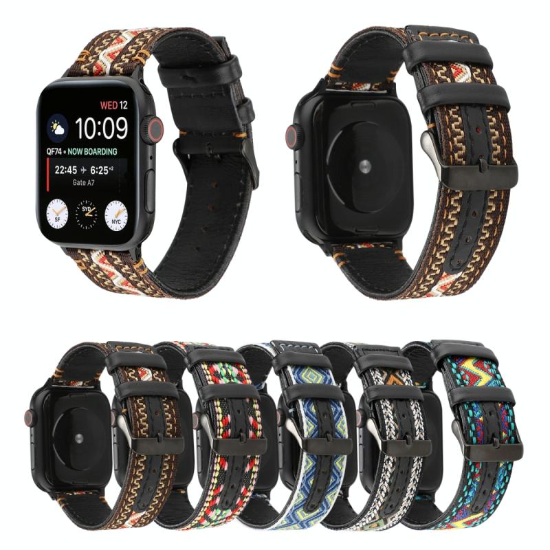 Για Apple Watch Series 7 45mm / 6 & SE & 5 & 4 44mm / 3 & 2 & 1 42mm Λουρί από γνήσιο δέρμα σε εθνοτικό στυλ (Αγροτικό)