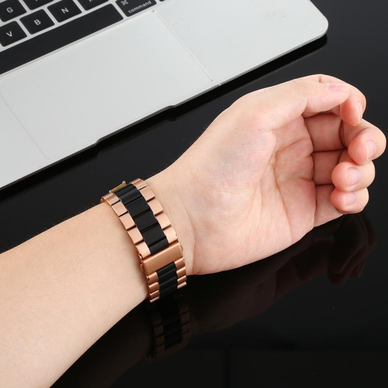 Για Apple Watch Series 7 45mm / 6 & SE & 5 & 4 44mm / 3 & 2 & 1 42mm Λουρί καρπού από ανοξείδωτο ατσάλι (Μαύρο + Ροζ Χρυσό)