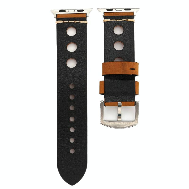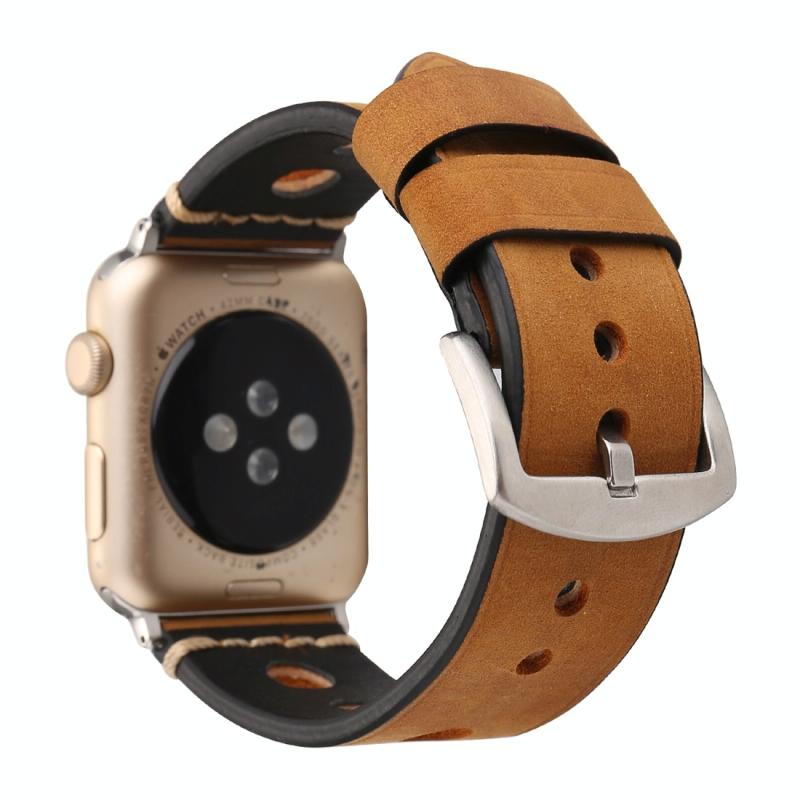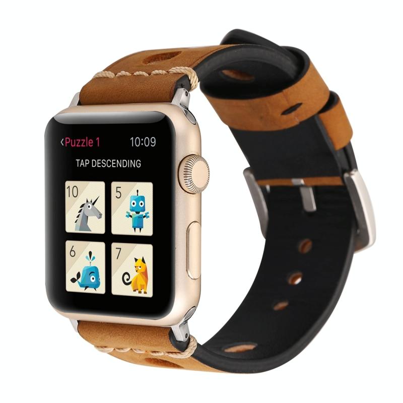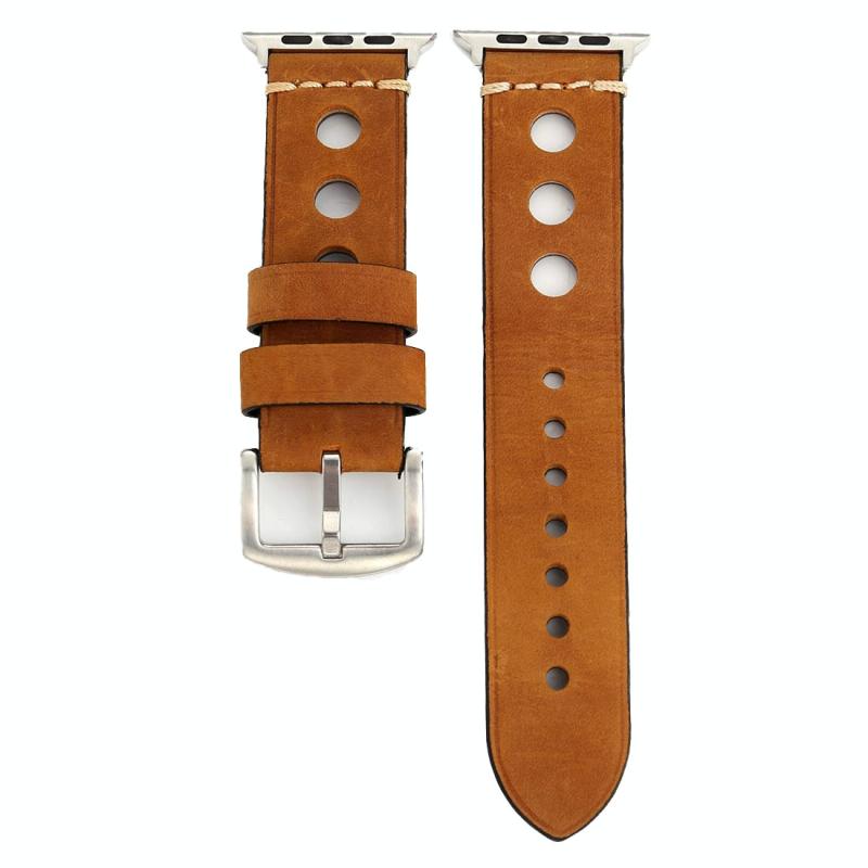 Για Apple Watch Series 7 45mm / 6 & SE & 5 & 4 44mm / 42mm 3 & 2 & 1 Ρετρό Δερμάτινο Λουράκι Χειρός με Τρύπες (Καφέ)