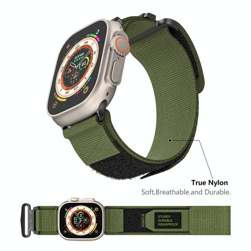 For Apple Watch Series 7 45mm AW Nylon Two-Section Watch Band(Army Green)