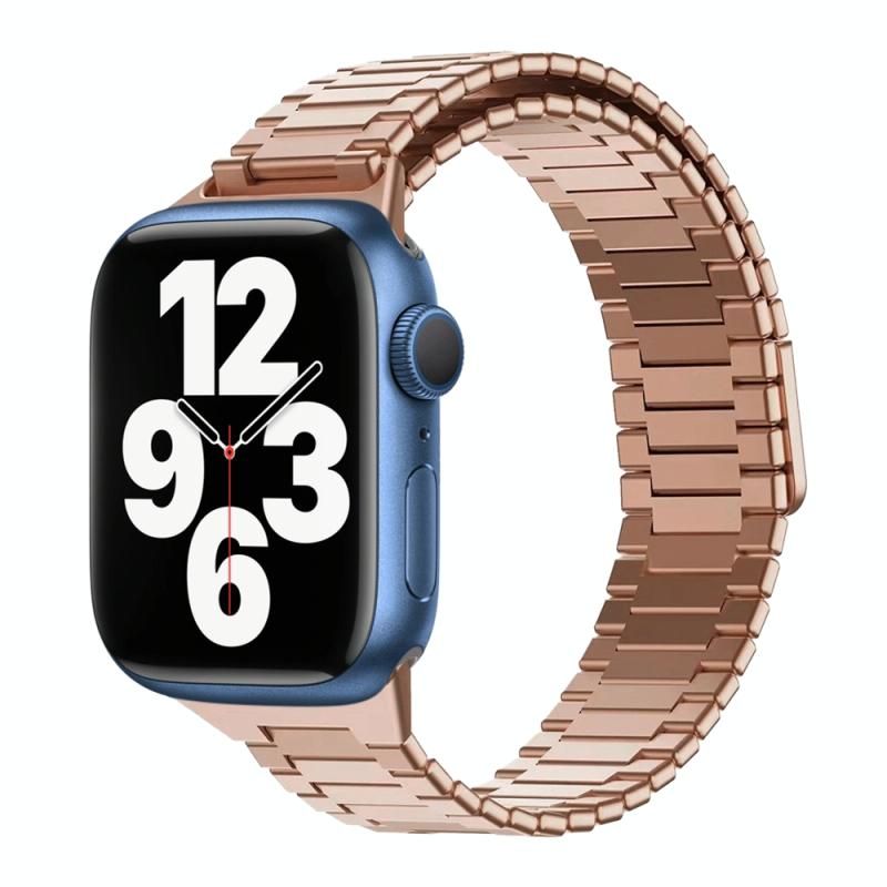 Για Apple Watch Series 7 45mm Μαγνητικό Λουράκι Μπαμπού από Ανοξείδωτο Ατσάλι (Ροζ Χρυσό)