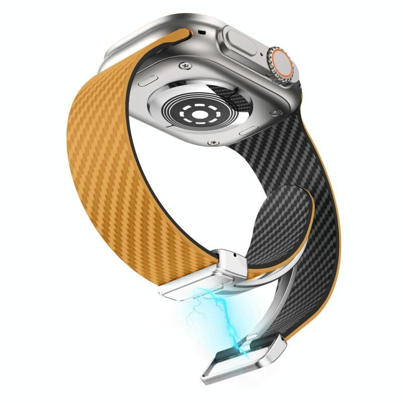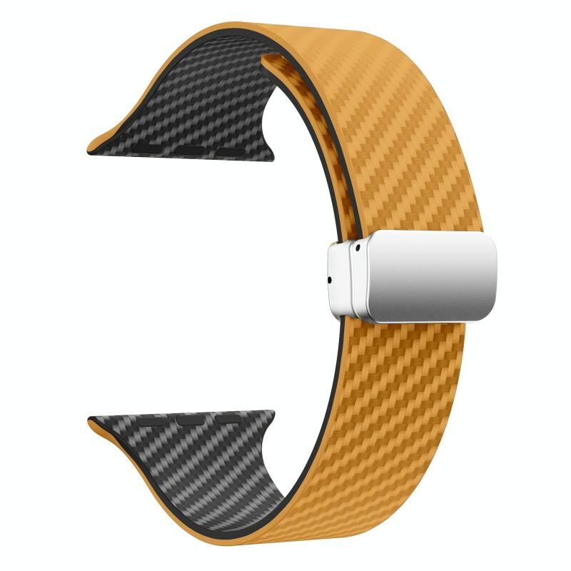 Για Apple Watch Series 7 45mm Λουρί ρολογιού από ανθρακονήματα με μαγνητική αγκράφα ασημί (Ανοιχτό καφέ μαύρο)