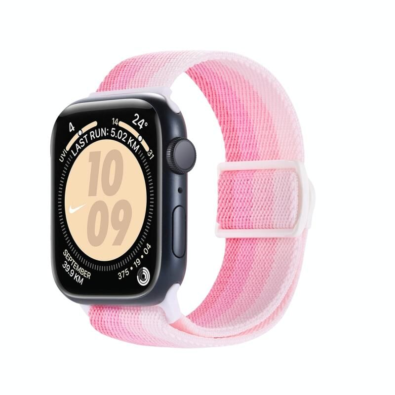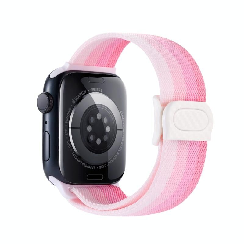Για Apple Watch Series 7 45mm Λουρί ρολογιού από νάιλον με αγκράφα ασφαλείας υφής ανθρακονήματος (Ροζ διαβάθμιση)