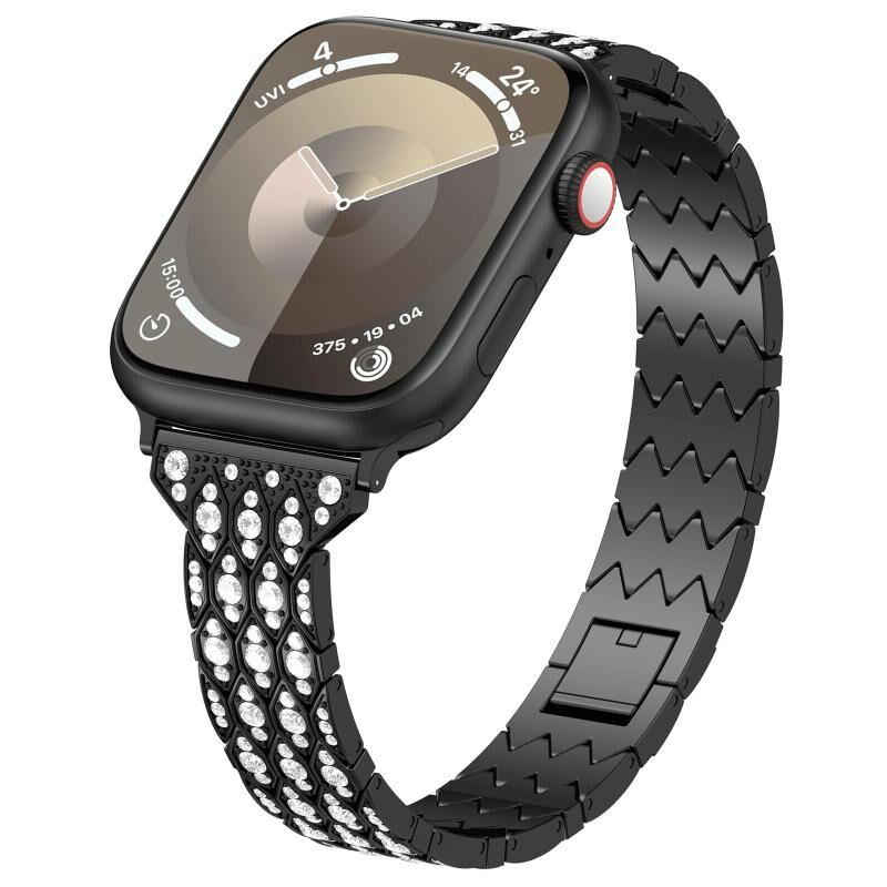 Για Apple Watch Series 7 45mm Βραχιόλι Devil Eye με Διαμάντια, Μεταλλικό Λουράκι Ρολογιού (Μαύρο)