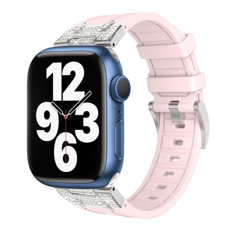 Για Apple Watch Series 7 45mm Λουράκι Σιλικόνης Διαμαντένιος Αστρικός Ουρανός (ρόζ)
